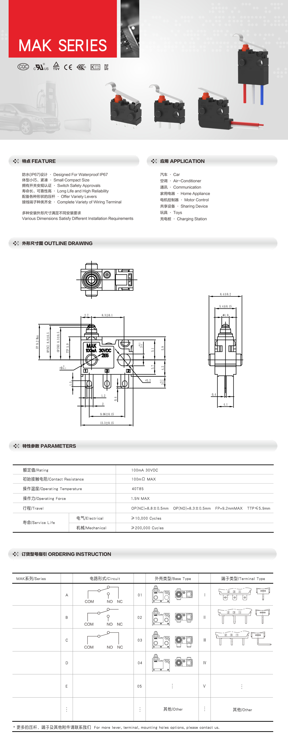 防水微动开关MAK系列